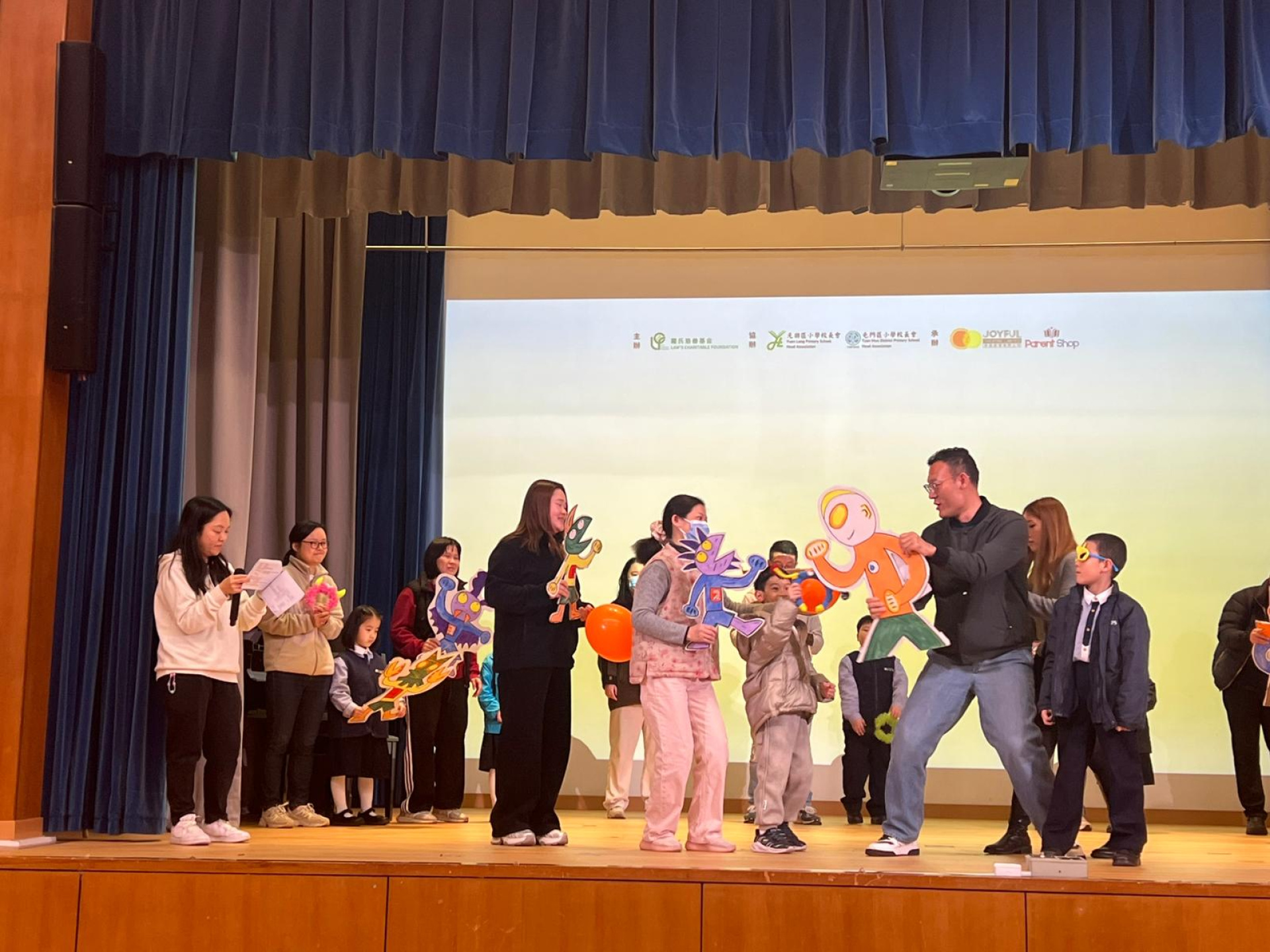 本校參加由羅氏慈善基金主辦、屯門及元朗區小學校長會協辦的「羅氏正向繪本教室」活動,日前舉行「成果分享會」,活動當日的「親子正向故事互動匯演」讓家長與子女一同透過演繹繪本,培養自信、溝通與合作精神,並共享閱讀的樂趣。