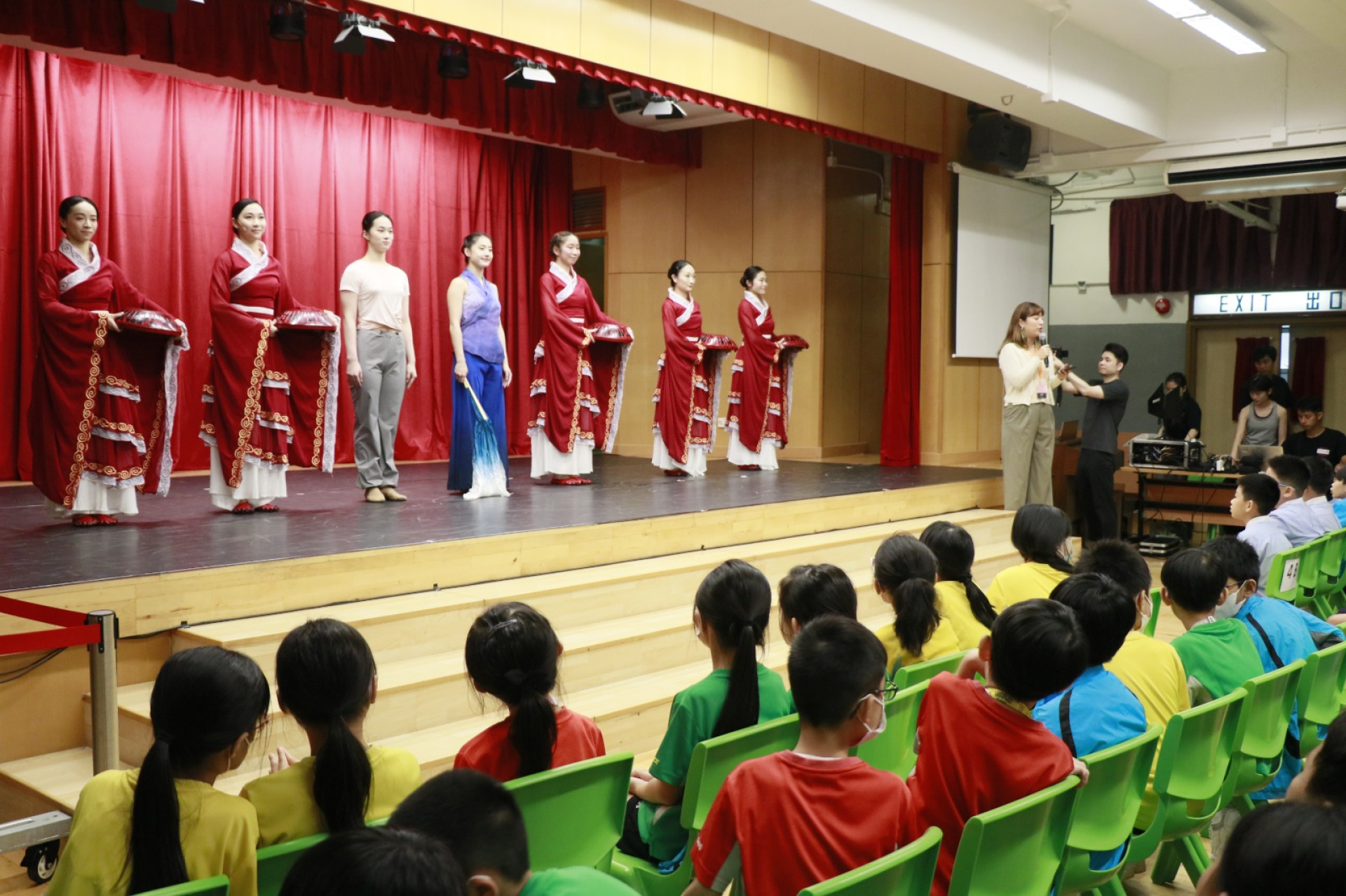 本校獲選參加「舞躍神州」中國舞蹈賞識及創作實踐計劃,香港舞蹈團一眾專業舞蹈員於10月6日到校進行導賞展演,內容包含現場互動和舞蹈展示,引領學生欣賞舞蹈,生動易明的導賞展示令學生輕鬆領略中華傳統文化之美,從而培養其藝術賞析能力。展演除了介紹本計劃內容,同時也向學生介紹如何欣賞中國舞及當中蘊含著的中華文化精髓。透過學習欣賞中國舞,學生可以了解不同民族文化和藝術風格,從而增加對中華文化的了解。