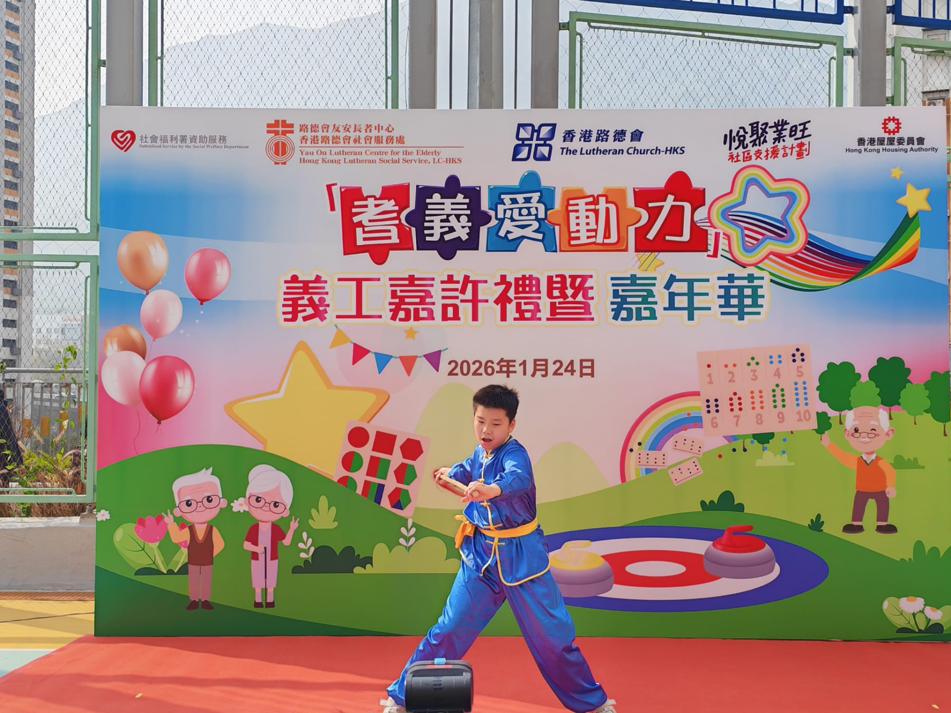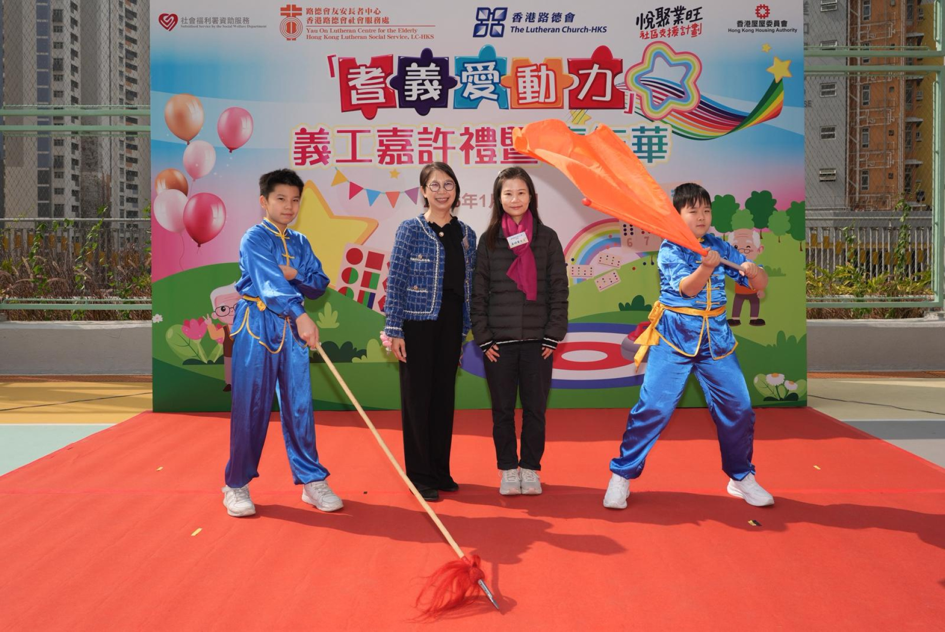 本校獲邀參加由香港路德會社會服務處主辦的「耆義愛動力義工嘉許禮暨嘉年華」。此次活動由校長帶領教師及學生參加,本校武術隊的學生為嘉年華進行表演,同時還特別邀請多位校友回來助陣,為活動增添光彩。